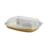 أوعية طعام ألمنيوم مستطيلة الشكل قابلة للميكروويف مع غطاء - 850 مل