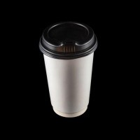 كوب ورق أبيض 12أونص مزدوج الجدار - غطاء أسود