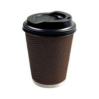 فنجان قهوة بني 12 أونصة (غطاء أسود)