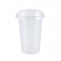 كوب بغطاء مسطح شفاف - 16 أونصة