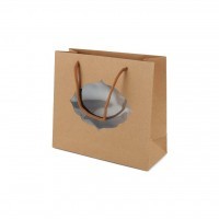 KRAFT PAPER BAG WITH DESIGN WINDOW SMALL- 15 X 14 X 7 CM