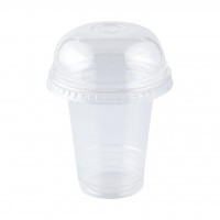 Clear Dome Lid Flat Cup with Straws 12 oz
